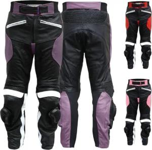 Damen Motorradhose Motorrad Biker Racing Lederhose Rindsleder, Lila, 40/L