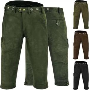 Jagd Lederhose Kniebundhose Jägerhose Trachten & Wanderhose Nubuckleder, 60/4XL, Schwarz