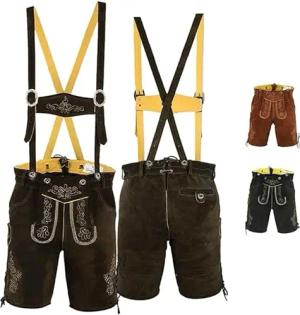 Kurze Trachtenlederhose Lederhosen mit Hosenträger (DE/NL/SE/PL, Numerisch, 60, Regular, Regular, Schwarz)