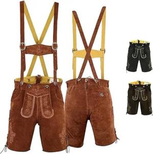 Kurze Trachtenlederhose Lederhosen mit Hosenträger (DE/NL/SE/PL, Numerisch, 54, Regular, Kurz, Kastanienbraun)
