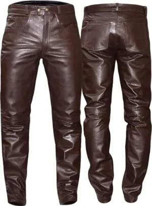 Lederhose Lederjeans bikerjeans Echtleder Hose aus Büffelleder braun, Größe:48