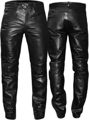Lederhose lederjeans bikerjeans Jeans Hose aus Büffelleder Schwarz, Größe:50