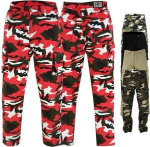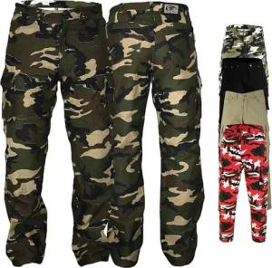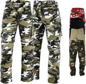 Motorradhose Herrren - Motorradjeans mit 2 CE-Protektoren - Bikerjeans futter aus Aramid-Kevlar-Stoff verstärkt - Cargohose rutsch- & brandfeste Jeanshose mit 6 Taschen Rot/Camo - 40W / 34