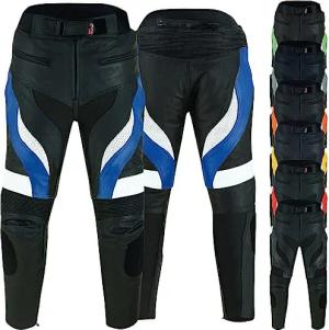 Motorradhose Motorrad Biker Lederhose Rindsleder Leder Hose Schwarz, 58/3XL, Blau