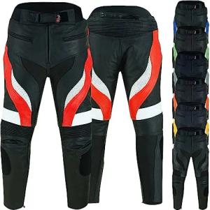 Motorradhose Motorrad Biker Lederhose Rindsleder Leder Hose Schwarz, 50/M, Rot