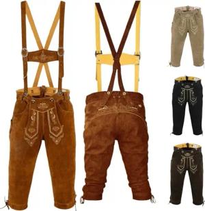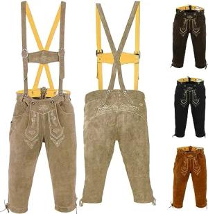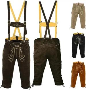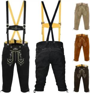 Trachten Lederhose Kniebundhose Trachtenhose Hose mit Hosenträger, Größe:56, Farbe:Kastanienbraun