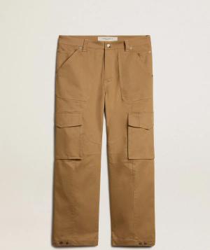 Kakifarbene Herren-cargohose Aus Baumwolle, Mann, Größe: 46