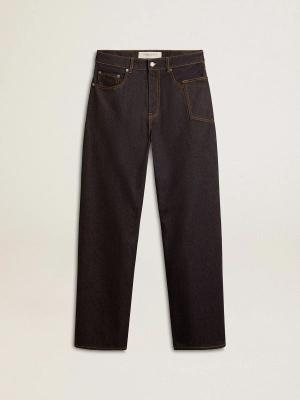 Dunkelblaue Herrenjeans Aus One-wash-denim Mit Weitem Bein, , Größe: 28