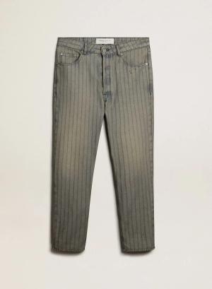 Grau Gestreifte Herrenhose Aus Denim, Mann, Größe: 29