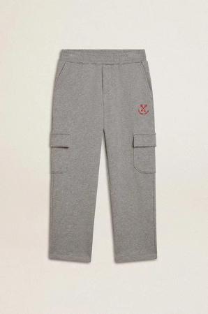 Grau Melierte Cargo-joggers Aus Baumwolle Mit Stickerei, , Größe: 10