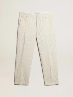 Sahneweiße Herrenhose Aus Baumwolle Mit Streifenmuster, , Größe: 44