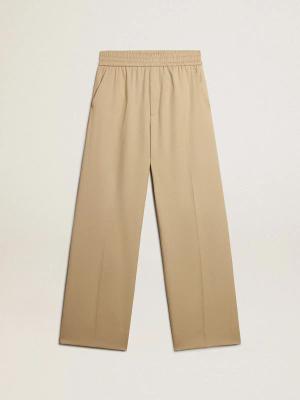 Herrenjoggers In Hellem Beige Mit Weißem Logo, Mann, Größe: L