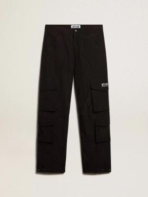 Schwarze Cargohose Aus Nylon-ripstop, Mann, Größe: 44