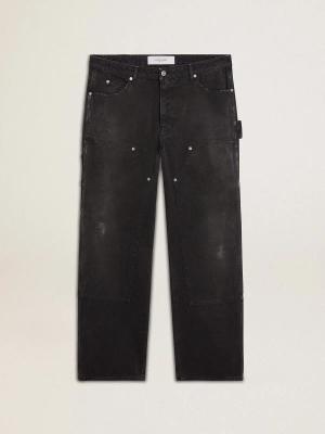 Schwarze Herrenjeans Aus Baumwolle In Distressed-optik Mit Front-patches, Mann, Größe: 46