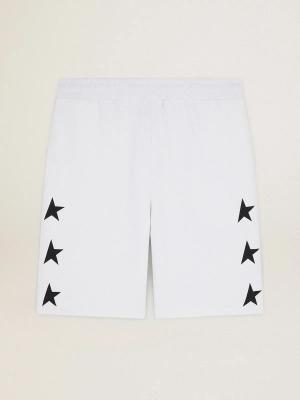 Weiße Herren-bermudashorts Im Vintage-stil Mit Kontrastierenden Schwarzen Sternen, Mann, Größe: S