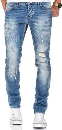 Herren Strech Destroyed Slim Fit Denim Jeans Hose 7500 Hellblau W29/L30