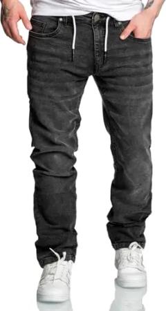 Herren Sweathose in Stretch Denim Männer Kordel Basic Jogging Jeans 7031 Schwarz W33