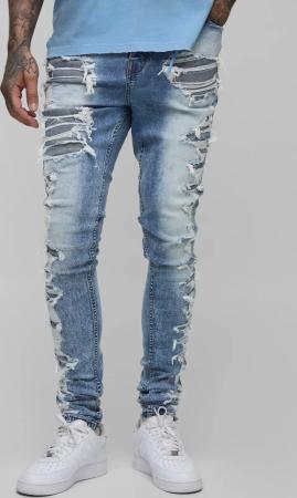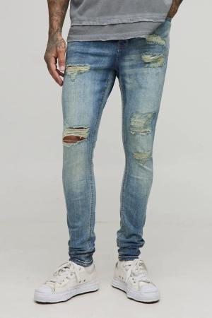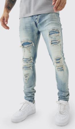 Tall Stacked Skinny Extreme Rip & Repair Skinny Jeans - Stonewash - 34, Stonewash