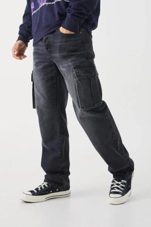 Lockere Cargo-Jeans Mit Acid-Waschung - Charcoal - 32R, Charcoal