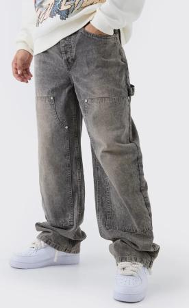 Plus Lockere Cargo-Jeans Mit Acid-Waschung - Charcoal - 38, Charcoal