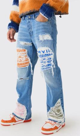 Lockere Jeans Mit Antik-Blauem Print - Antique Blue - 32R, Antique Blue