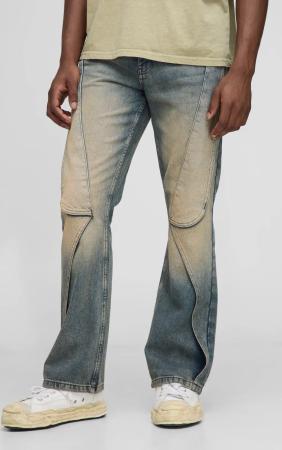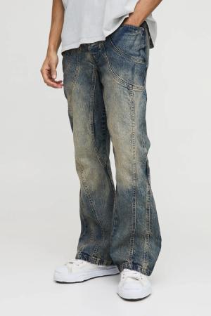 Slim Flared Panelled Washed Jeans - Antique Wash - 32R, Antique Wash