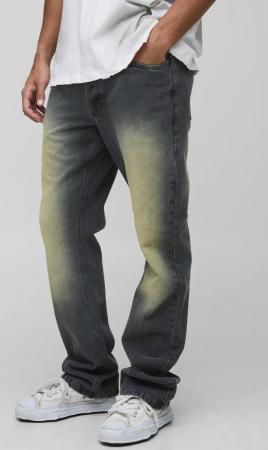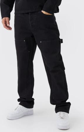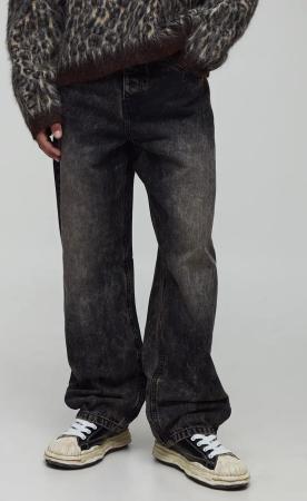 Relaxed Fit Washed Knee Dart Jeans - Washed Black - 32R, Washed Black