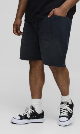 Plus Relaxed Fit Jorts With Pleat Waist Detail - Washed Black - 38, Washed Black