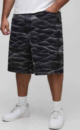 Plus Parachute Crinkle Washed Denim Shorts - Washed Black - 42, Washed Black