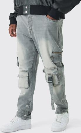 Plus Skinny Stretch Cargo-Jeans Mit Taschen - Grey - 44, Grey