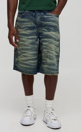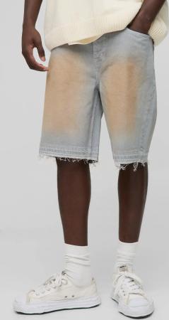 Relaxed Rigid Let Down Hem Tinted Denim Shorts - Stonewash - 30, Stonewash