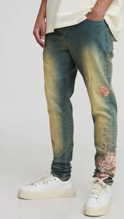 Skinny Floral Embroidery Denim Jeans - Antique Wash - 32R, Antique Wash