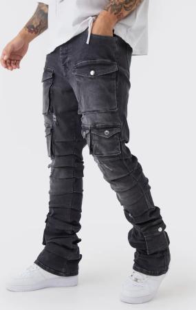 Skinny Stretch Cargo-Jeans - Washed Black - 28R, Washed Black