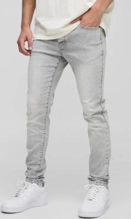 Skinny Stretch Grey Washed Jeans - Ice Grey - 30R, Ice Grey