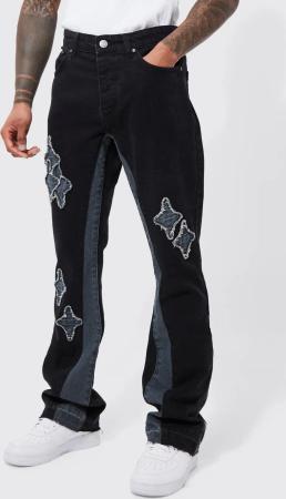 Slim-Fit Schlagjeans Mit Applikation - Washed Black - 36R, Washed Black
