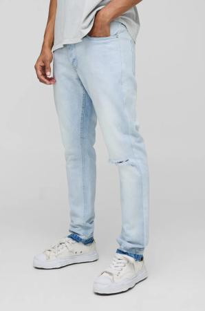 Slim Fit Subtle Ripped Tinted Jeans With Let Down Hem - Light Blue - 32R, Light Blue
