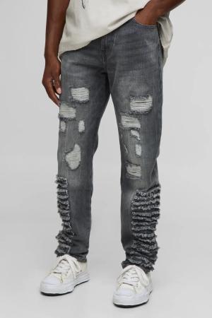 Slim Stacked Ripped Charcoal Washed Jeans - 32R, Charcoal