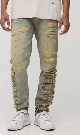 Slim Stacked Ripped Washed Jeans - Antique Blue - 32R, Antique Blue