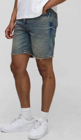Straight Fit Dirty Wash Tinted Denim Shorts - Blue - 32, Blue