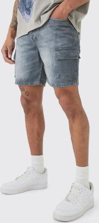 Graue Slim Cargo-Jeansshorts - 36, Grau