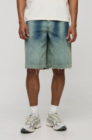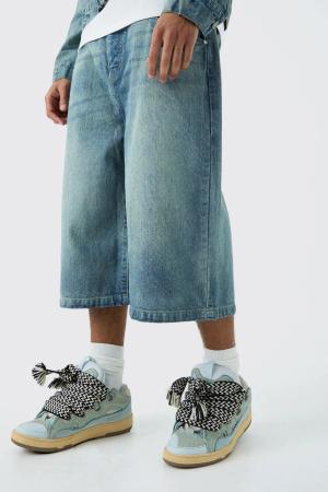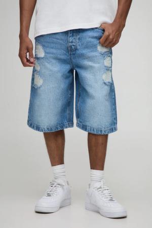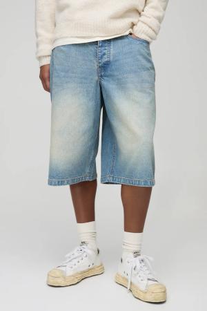 Longline Stonewash Denim-Jorts - Blau - 32, Blau