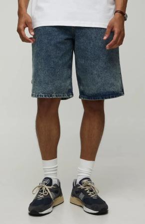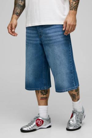 Lange Skater Denim-Jorts - Blau - 32, Blau