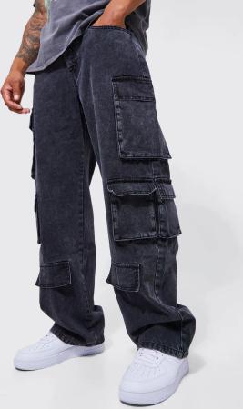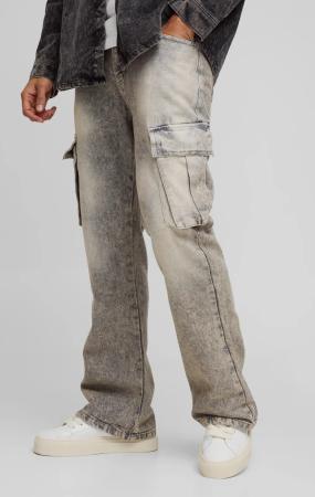 Plus lockere Cargo-Jeans mit Acid-Waschung - Grau - 40, Grau