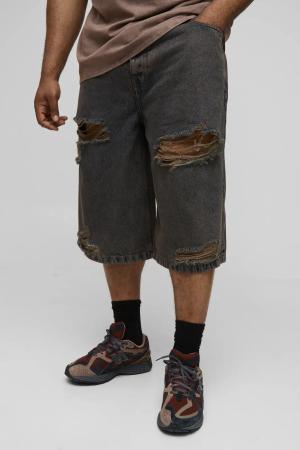 Plus zerrissene Skinny Stretch Jeansshorts - Grau - 40, Grau