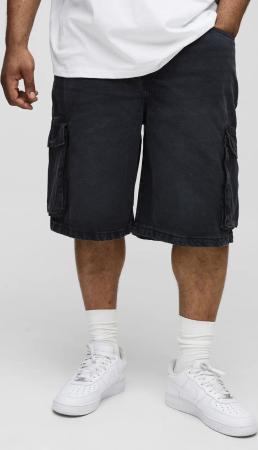 Plus lockere Cargo-Jeansshorts - Schwarz - 38, Schwarz