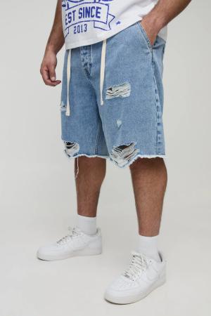Plus lockere zerrissene Jeansshorts mit Kordelzug - light wash - 38, light wash