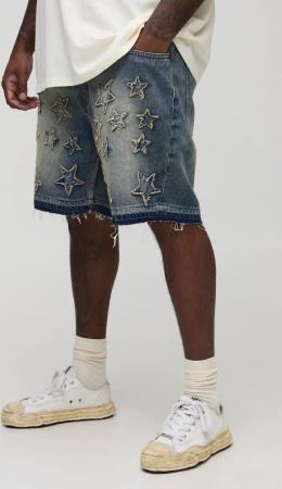 Plus Slim-Fit Jeansshorts mit Stern-Applikation - Blau - 40, Blau
