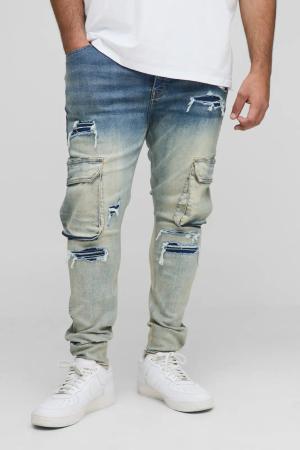 Plus Super Skinny Cargo-Jeans mit Rissen - stonewash - 38, stonewash