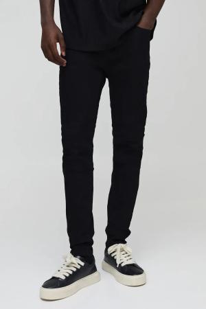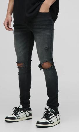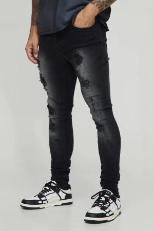 Super Skinny Stretch Bikerjeans mit Rissen - Schwarz - 32R, Schwarz