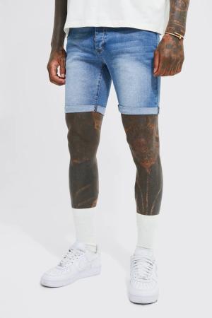 Mittelblaue Skinny Stretch Jeansshorts - 28, Blau